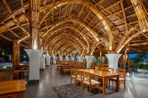 Designed in the shape of an arc, Gozo evokes the imagery of a kite catching wind toward an immense ocean. Gozo is the largest bamboo restaurant in Vietnam with the square up to 1.900m2, made up of more than 40.000 sturgeon trees and a dome roofed by hundreds of thousands of nipa leaves.